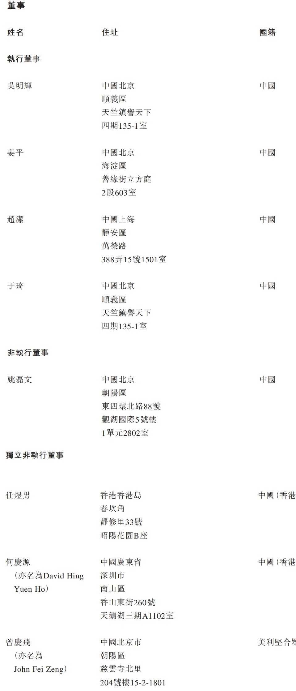 明略科技执行董事分别为吴明辉、姜平、赵洁、于琦;非执行董事为姚磊文,独立非执行董事分别为任煜男、何庆源(亦名为DavidHing Yuen Ho)、曾庆飞(亦名为 John Fei Zeng)。