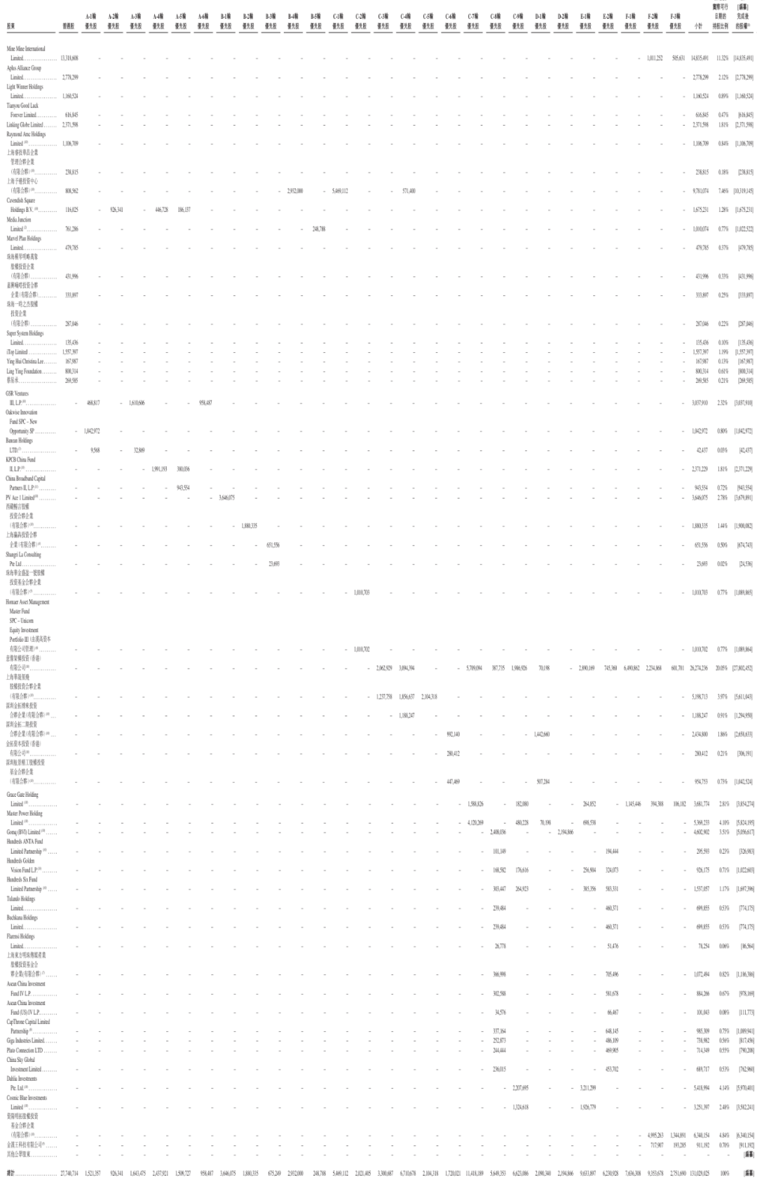 红杉中国持股为7.46%,淡马锡(Temasek)持股为4.14%,华兴资本通过华晟持股为3.97%,星界持股为3.51%,春华持股为2.78%;