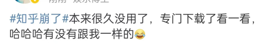 更有意思的是,一些久未登录的用户,专门重新下载了知乎 APP,只为亲眼看看“知乎崩了”的盛况。