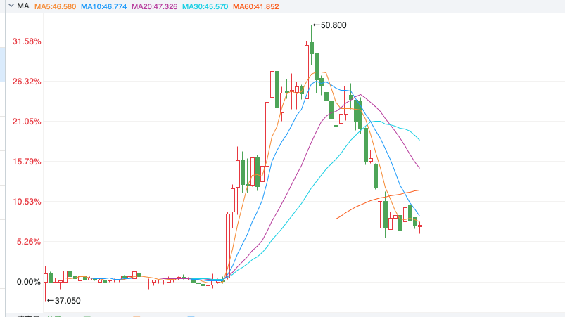 在接下来的30余个交易日里,富卫集团始终在38港元附近波动,最高只有38.8港元/股。8月27日开始,富卫集团开启了一波连续上涨,总涨幅近30%,最高突破50港元/股。可是好景不长,9月19日股价创出新高后,该股即开始快速下跌,仅一月有余,累计跌幅接近20%,重回40港元附近,接近发行价38港元。