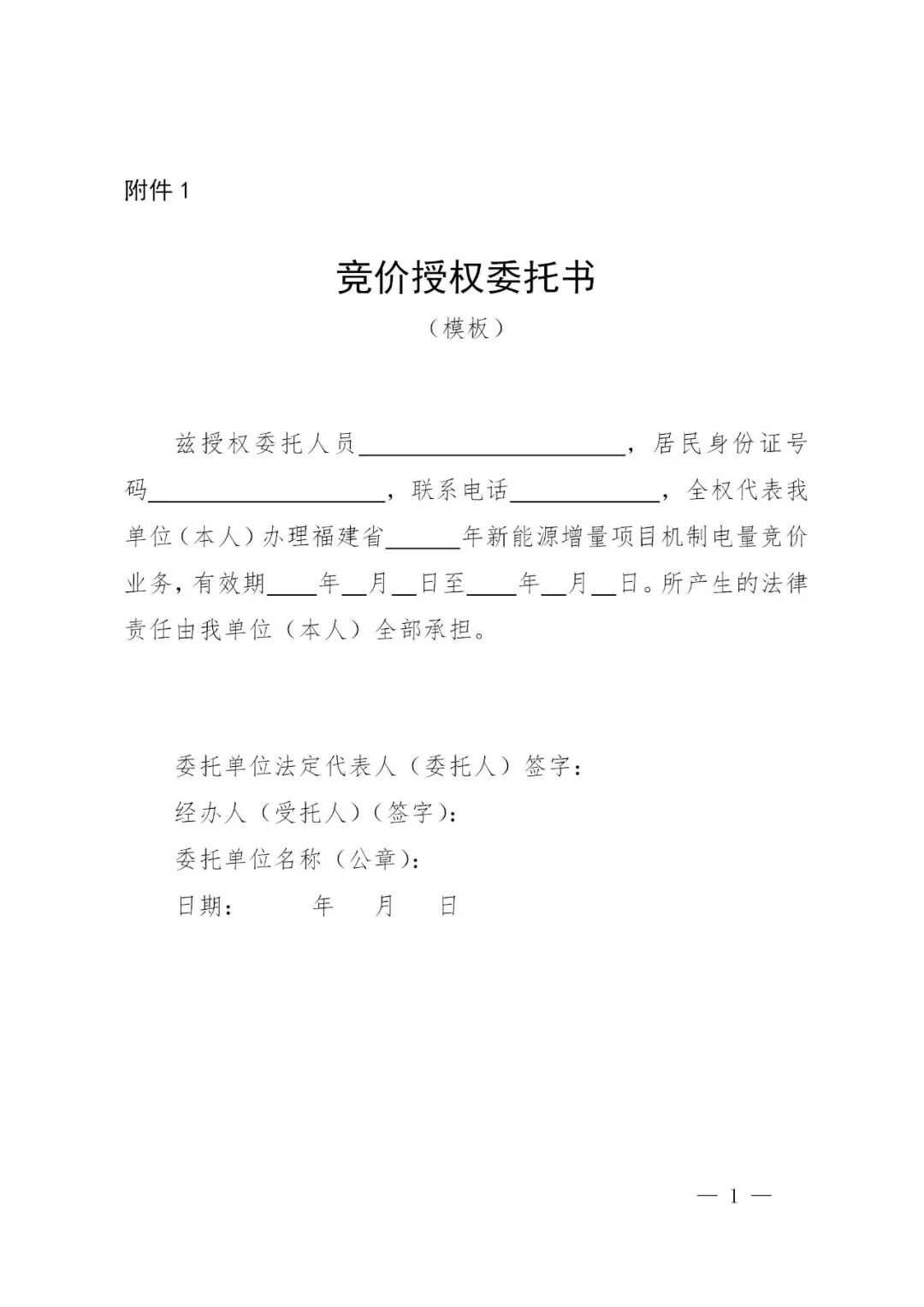 (2)分布式新能源项目。自然人户用项目需提交户主法定身份证明;非自然人项目需提交项目备案文件、营业执照、法定代表人法定身份证明。如非户主或非企业法定代表人办理,还需提供经办人法定身份证明、竞价授权委托书。竞价授权委托书模板见附件1。