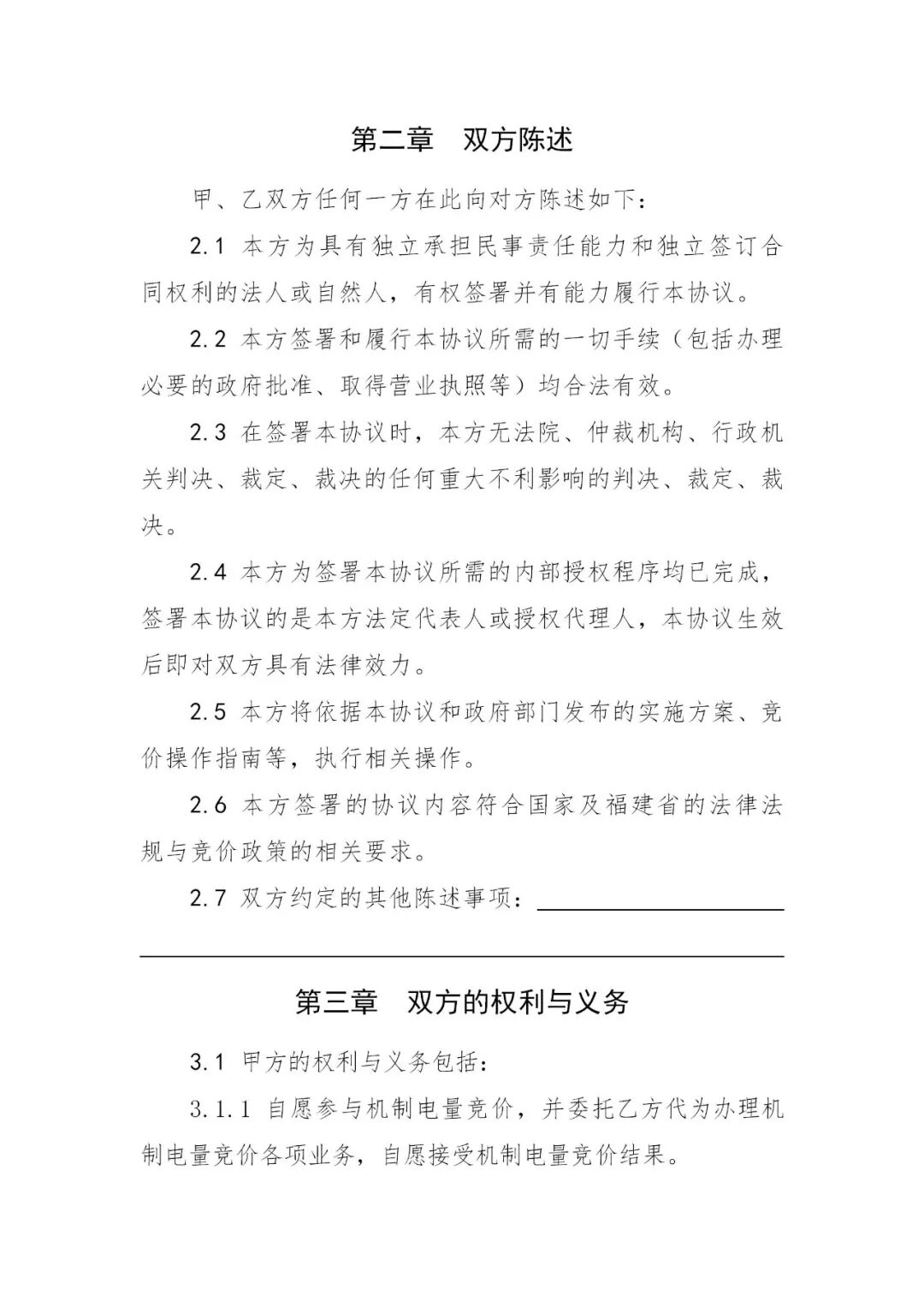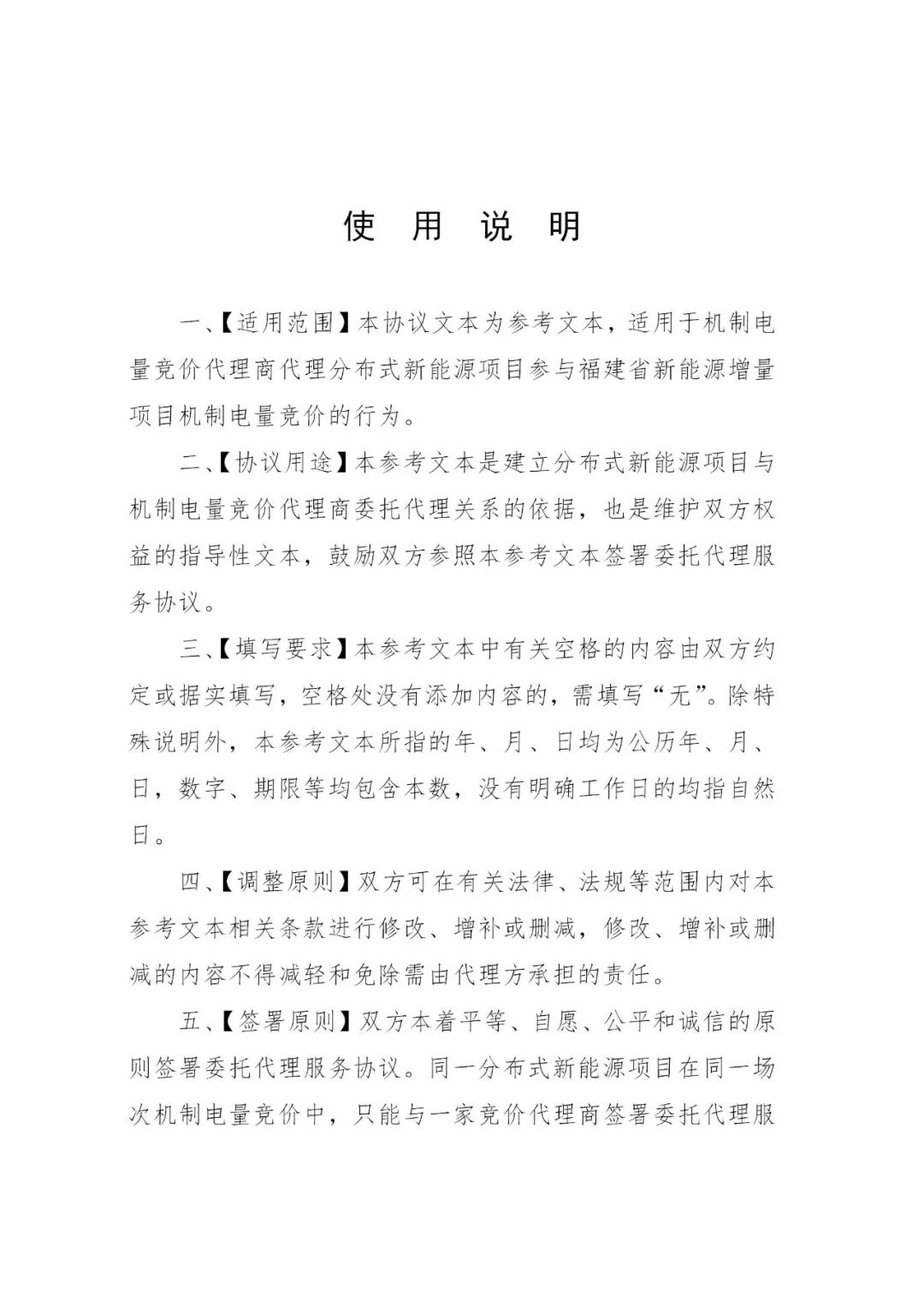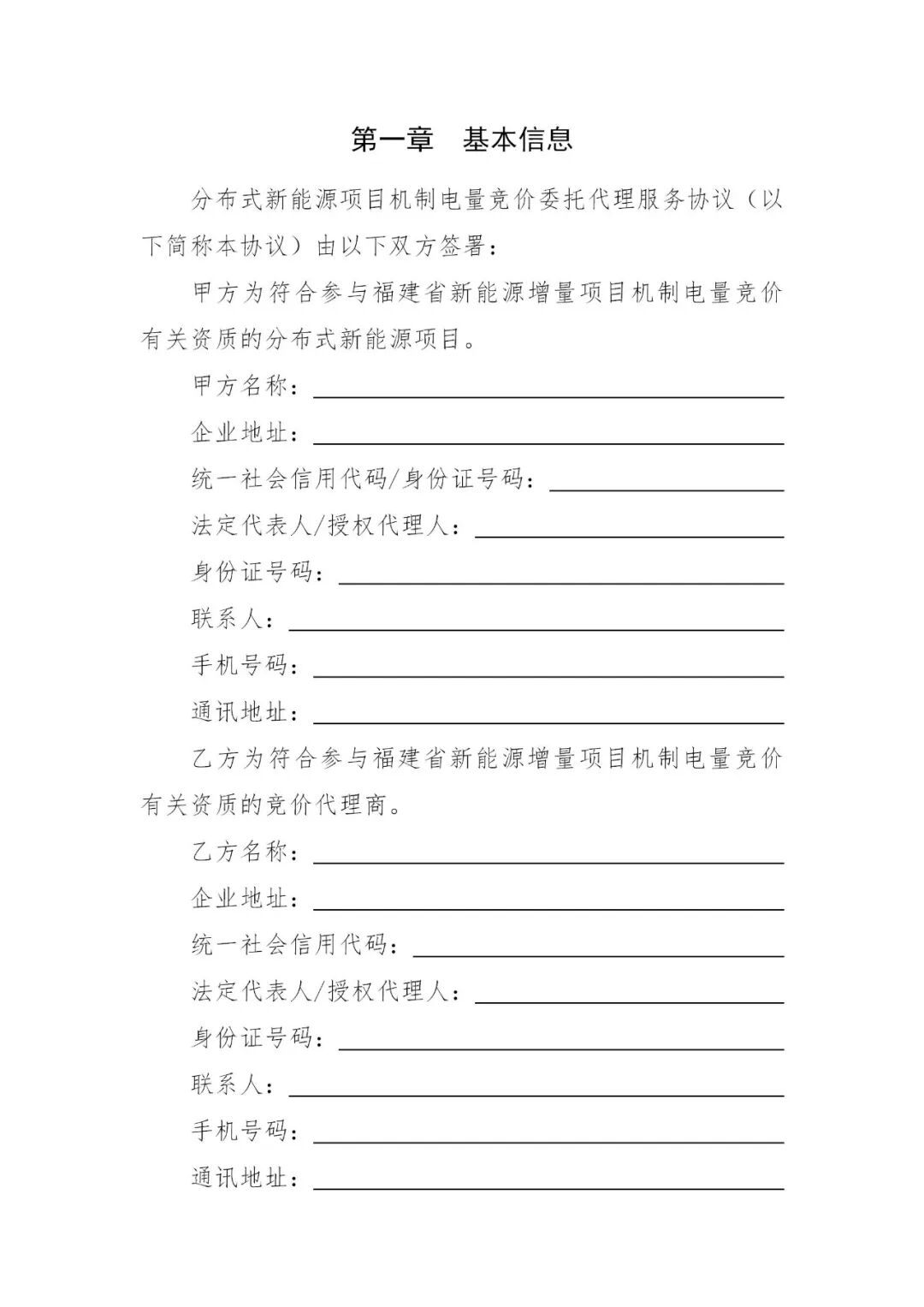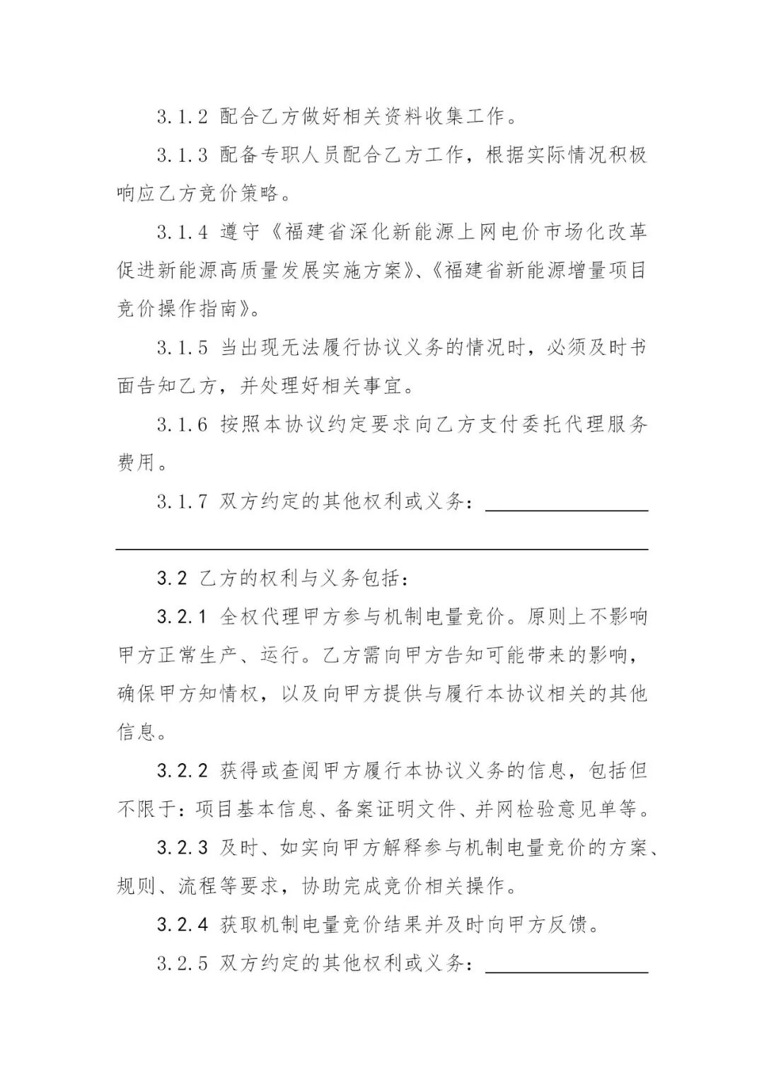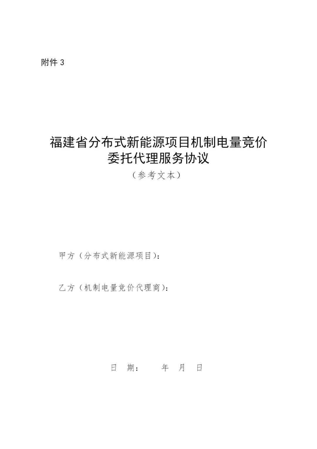 3.福建省分布式新能源项目机制电量竞价委托代理服务协议(参考文本)