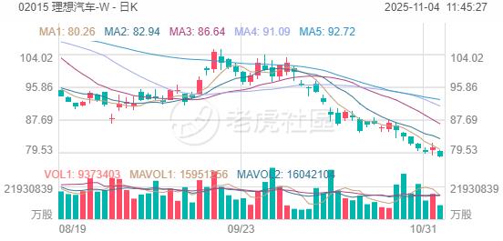 11月4日,理想汽车-W跌超3%,近一个月股价累跌逾两成。