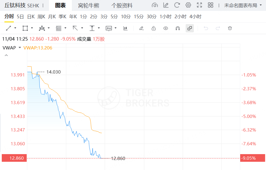 11月4日,苹果概念股盘中下跌,丘钛科技跌超9%,鸿腾精密跌超6%,富智康集团跌超4%,比亚迪电子跌超1%。