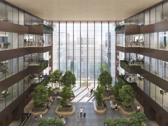 Z6项目东侧直面CBD中央公园,享有优越景观视野;内部规划涵盖超高共享中庭、超大跨度无柱空间及可开启式内呼吸幕墙系统等亮点设施,营造高品质、高舒适度的办公环境,预计将于2026年正式投入使用。