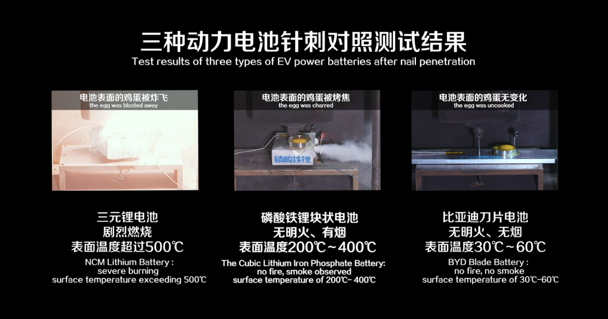▲ 比亚迪做的电池穿刺对照实验