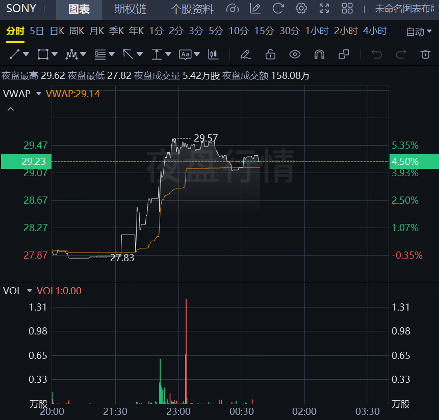 11月11日,索尼美股夜盘涨超4%!得益于娱乐业务的亮眼表现与高端智能手机影像传感器需求的回升,索尼公布了超预期的第二财季财报,并上调全年利润展望。
