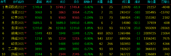 2025年11月12日,国内期货主力合约涨跌不一。沪银涨超2%,沪锡丁二烯橡胶、SC原油菜油、低硫燃料油(LU)、铁矿石涨超1%;跌幅方面,集运欧线、鸡蛋跌超3%,红枣跌超2%,焦煤焦炭玻璃跌超1%。