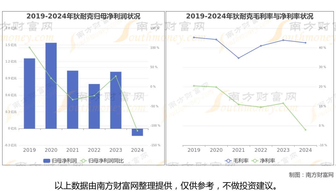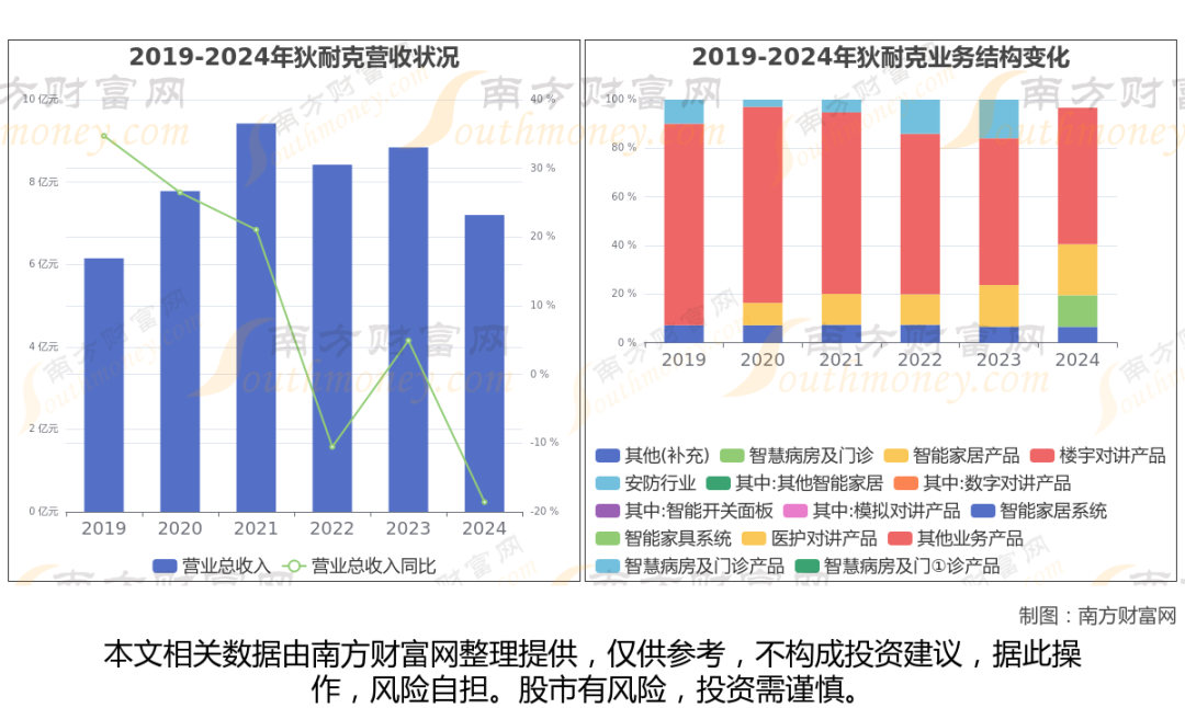 数据显示(如上图),狄耐克2024年营业收入为7.2亿,同比增长-18.58%,近5年复合年增长率-1.93%。