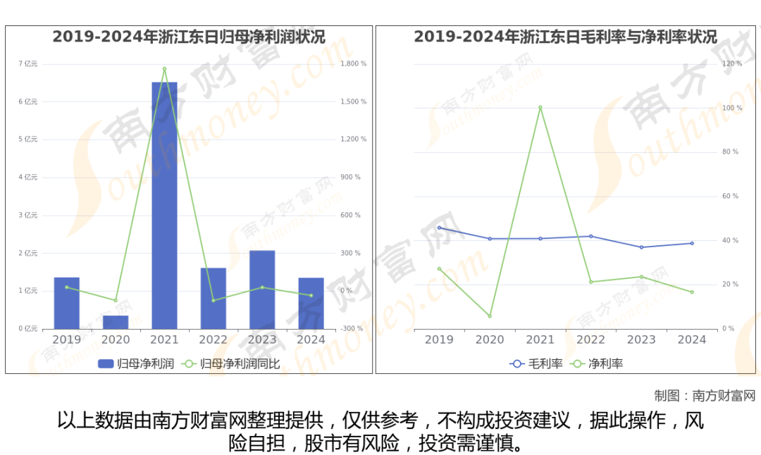 (如上图)2024年浙江东日公司营业总收入7.23亿,同比增长-18.44%,近五年复合增长率为7.35%。