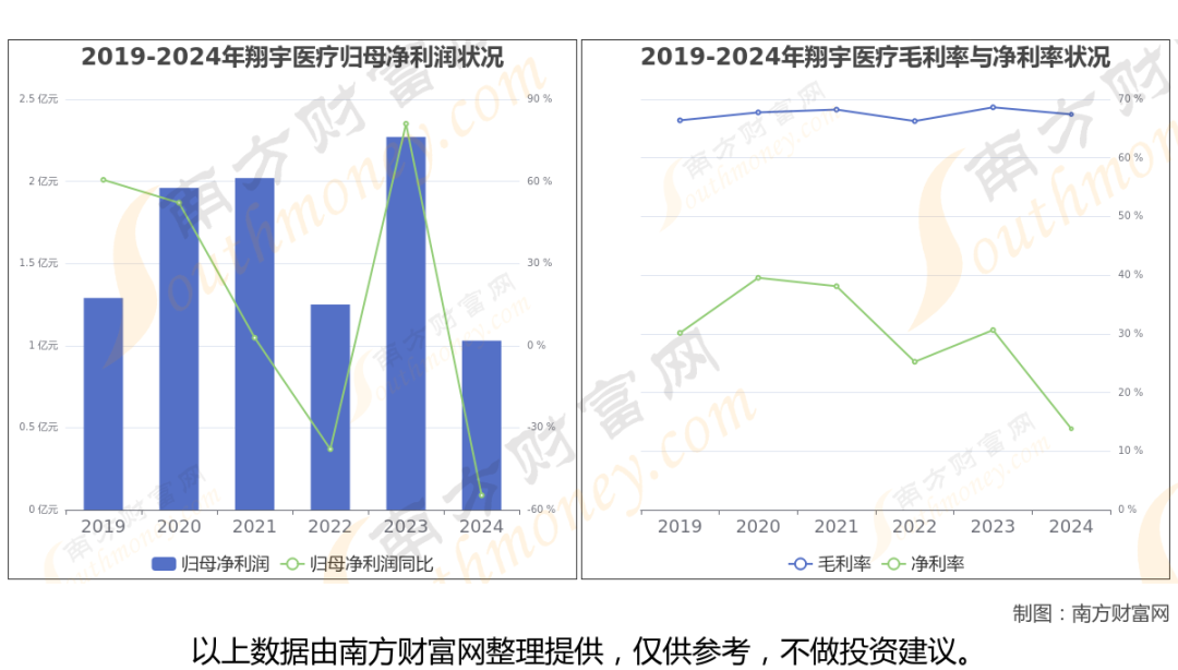 据翔宇医疗2024年全年业绩显示(如上图),公司营业收入为7.44亿,同比增长-0.17%,近5年复合年增长率10.68%。