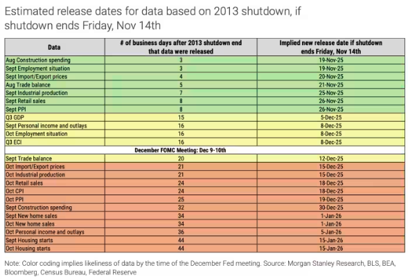 摩根士丹利估计,10月份的报告可能要到美联储12月9日至10日下一次利率投票前的几天才会公布,甚至可能与11月份的就业报告合并发布。