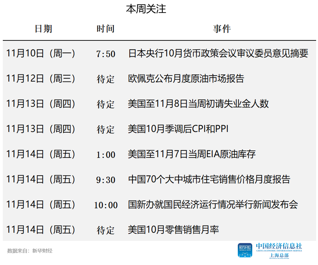 •国家统计局9日发布数据显示,10月份,扩内需等政策措施持续显效,叠加国庆中秋假期带动,全国居民消费价格指数(CPI)环比上涨0.2%,同比上涨0.2%,扣除食品和能源价格的核心CPI同比上涨1.2%,涨幅连续第6个月扩大。受国内部分行业供需关系改善、国际大宗商品价格传导等因素影响,工业生产者出厂价格指数(PPI)环比由上月持平转为上涨0.1%,为年内首次上涨;同比下降2.1%,降幅比上月收窄0.2个百分点,连续第3个月收窄。