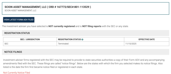 这封信的真实性尚未验证。不过,多家主流媒体均援引了信件内容,并确认Scion Asset Management的注册终止已在SEC档案中显示。