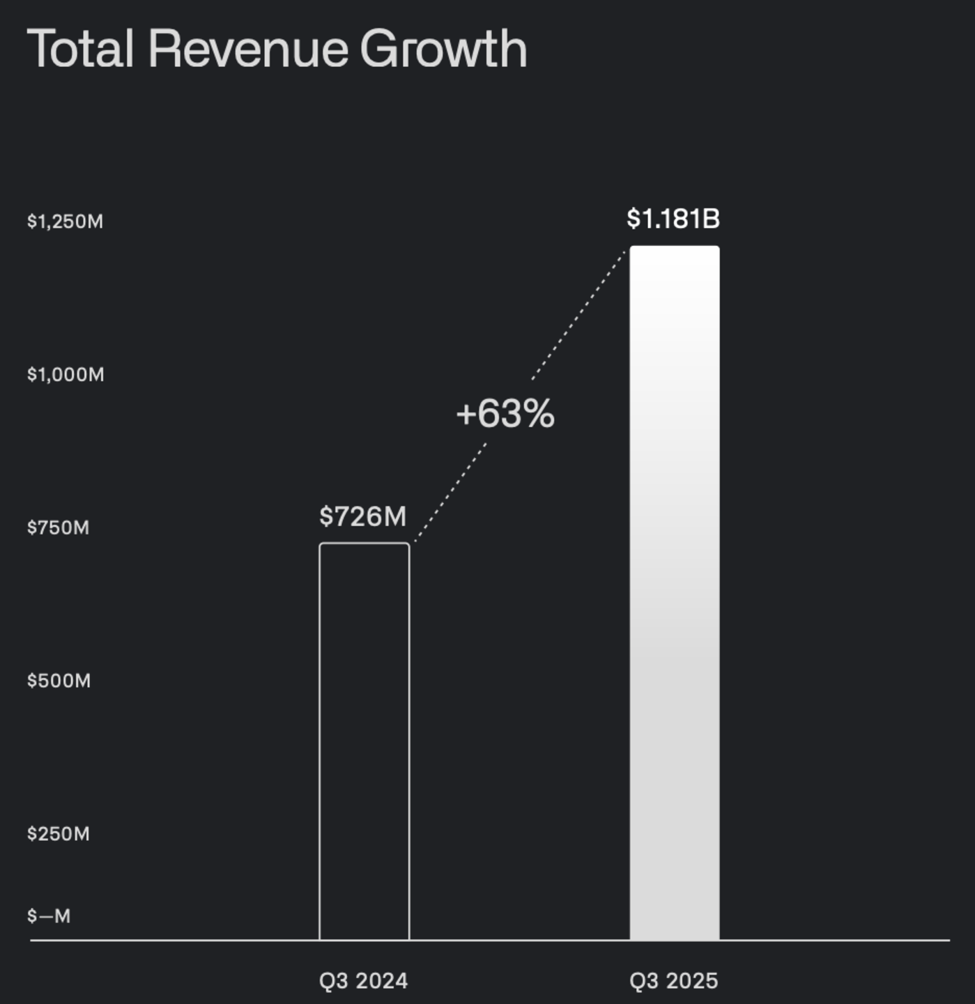 最新2025年Q3财报,Palantir的几组关键数据是这样: