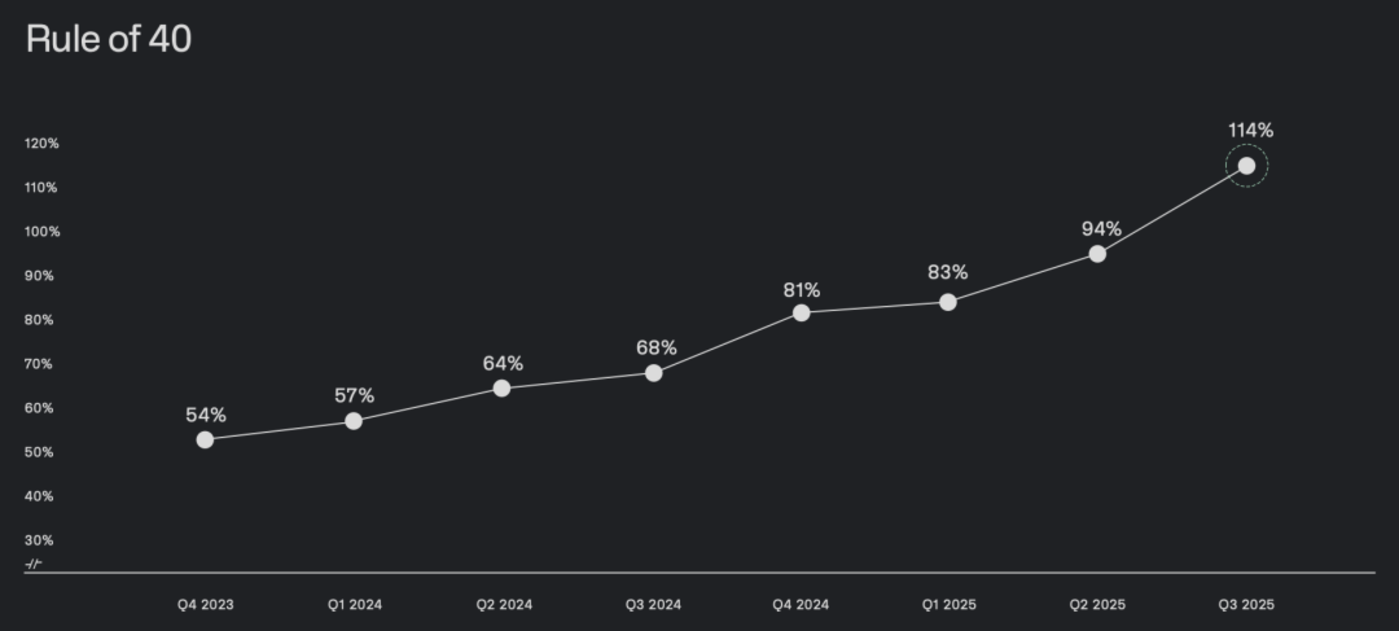 GAAP净利润4.76亿美金,净利率约40%,GAAP营业利润率33%,非GAAP营业利润率51%;按Investopedia的算法,“Rule of 40”达到了114%。