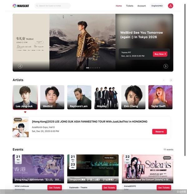 目前,大麦国际官方网站已经上线,支持简中、繁中、英、日、韩等多语言浏览。