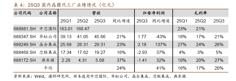 根据国内晶圆代工厂公布 25Q3 业绩情况,我们认为以下几点值得关注: