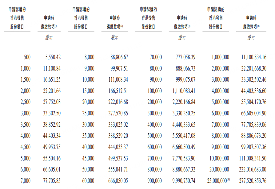 乙组门槛为50万股,申购所需资金约555.04万港元。