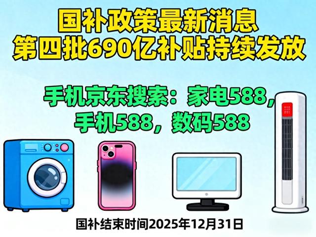 2025 年国补已进入 60 天倒计时,这是全年最后一波国家级消费红利,错过需再等两年。现在打开京东 APP,直接搜索“家电588”“手机588”,就能一站式领取补贴和红包,年底换家电、装修或置换汽车的话,赶紧行动起来!