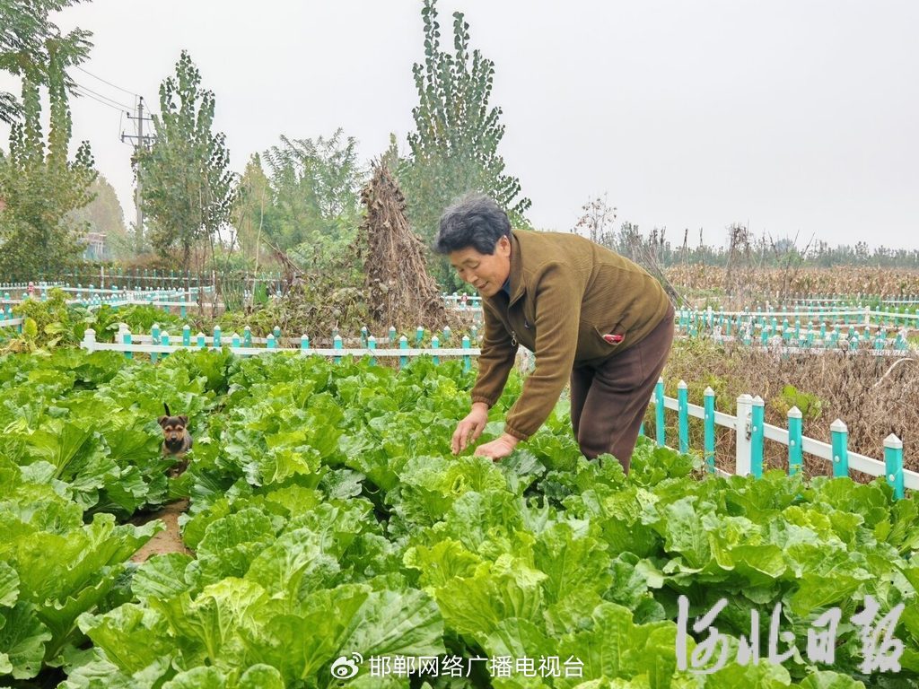 11月6日,邯郸市成安县曲村的一名村民,正在自家的小菜园查看蔬菜长势。河北日报记者高珊摄11月6日午睡起来,成安县曲村的苏大娘又到小菜园里忙活起来。小菜园离苏大娘家只有30米,是一块5米宽、6米长的小地块,里面整齐种着大白菜,叶片肥厚,颜色翠绿。在这块地周边,还有同样大小的数块菜地,有的刚收获,留下一片藤蔓;有的还种着大葱、萝卜。