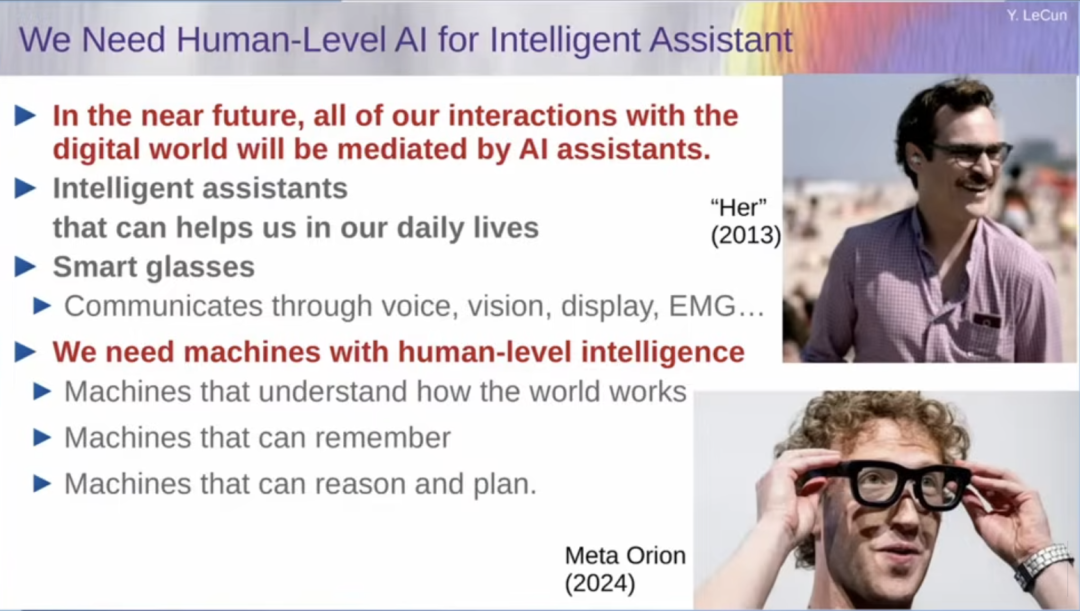 他认为,未来,我们需要与可穿戴设备互动,就像与人交流一样,而大语言模型根本不像人类那样理解世界。
