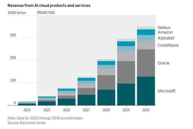 巨额投资最终需要市场买单,这构成了 AI 面临的另一重考验。摩根大通的一项财务模型预测,到 2030 年,全球 AI 基础设施的总投资将高达 5 万亿美元。