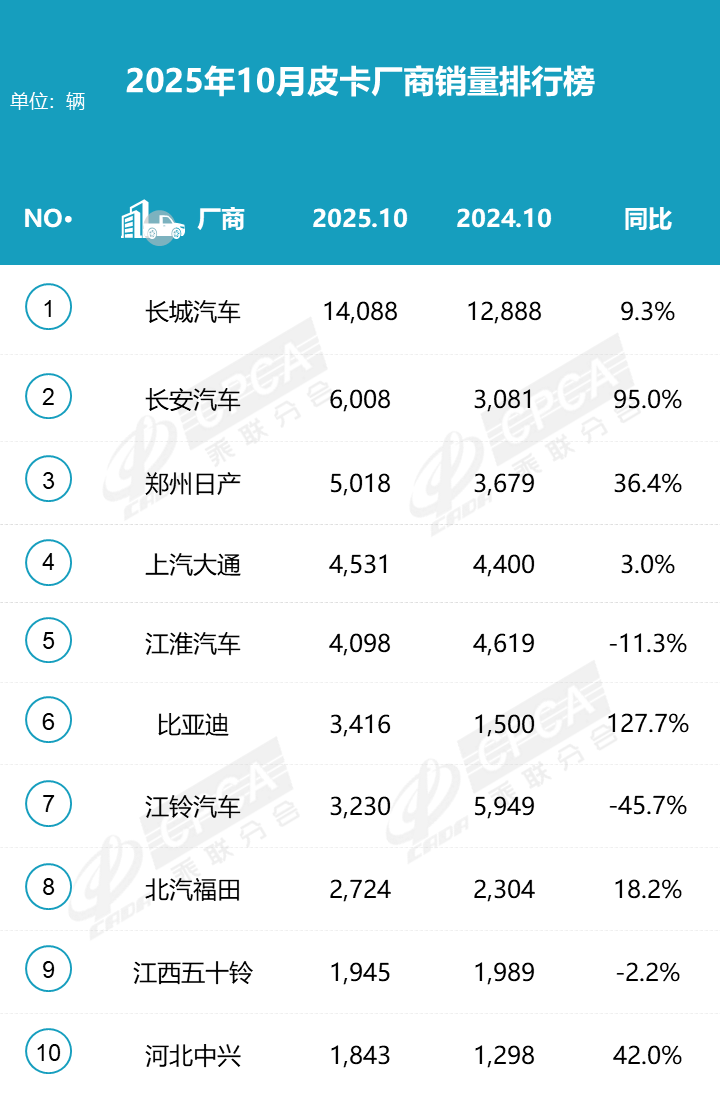 智通财经APP获悉,乘联分会发文称,2025年10月份皮卡市场销售为4.8万辆,同比增长12%,环比增长5.5%,处于近5年的中高位水平。2025年1-10月份皮卡市场销售48.1万辆,同比增长11.4%。2025年10月份皮卡生产为4.8万辆,同比增长12.3%。2025年1-10月份皮卡市场生产47.5万辆,同比2024年1-10月增长15.3%。