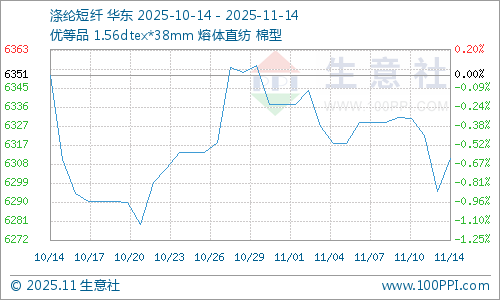 据生意社商品行情分析系统,本周(11月10-14日)国内涤纶短纤价格先跌后涨,截止11月16日涤纶短纤(1.4D*38mm)市场均价在6311元/吨,较周初下跌0.31%。