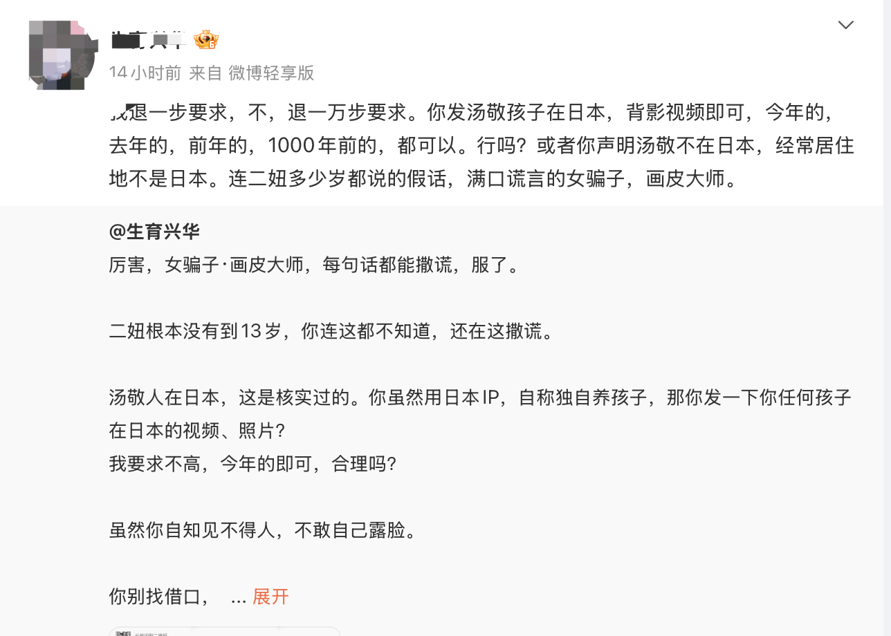 然而,剧情迅速反转。汤某此时站出来,抛出了一个截然不同的故事版本。她坚称,两人曾有过真挚感情,并共同决定建立一个庞大的家庭。