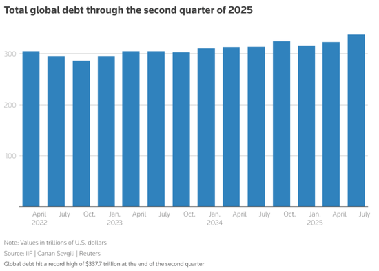 全球债务在第二季度末达到创纪录的 337.7 万亿美元