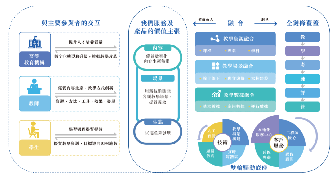 卓越睿新是一家高校教学数字化解决方案提供商,致力于高校数字化教育内容、数字化教学场景服务及产品的开发、交付和运营,产品服务覆盖教、学、练、考、评、管等所有重要方面。