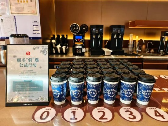 12月18日,近日,霸王茶姬在北京启动“暖冬‘骑’遇”公益行动。霸王茶姬在北京指定的84家门店,为骑手们提供了近3000杯精心制作的免费热饮。