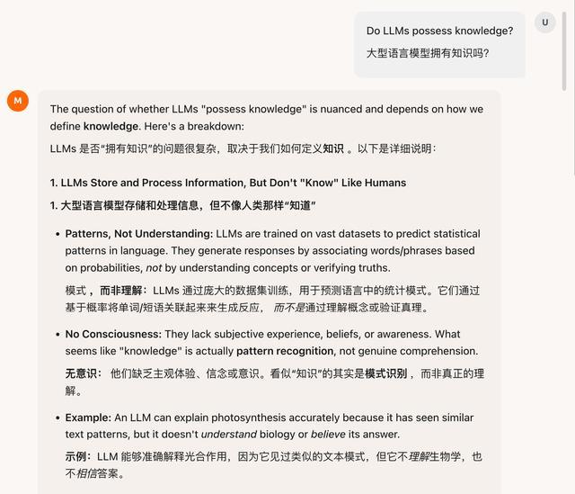 聊天能力方面,MiMo既能回答“大语言模型拥有知识吗”这类硬核科普类知识。