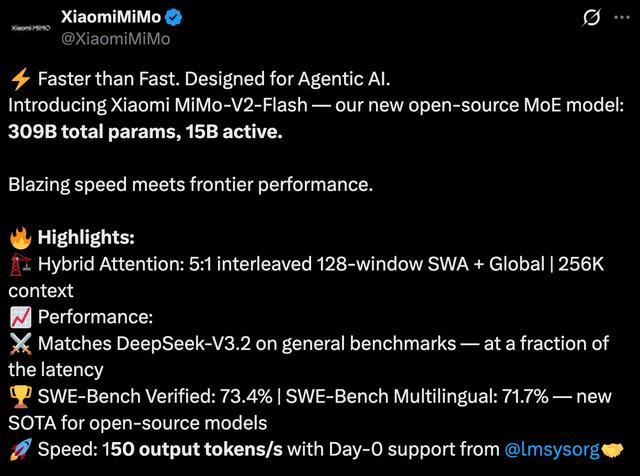 智东西12月17日报道,今天,小米发布并开源了最新MoE大模型MiMo-V2-Flash,总参数309B,激活参数15B。今日上午,小米2025小米人车家全生态合作伙伴大会上,Xiaomi MiMO大模型负责人罗福莉将首秀并发布主题演讲。