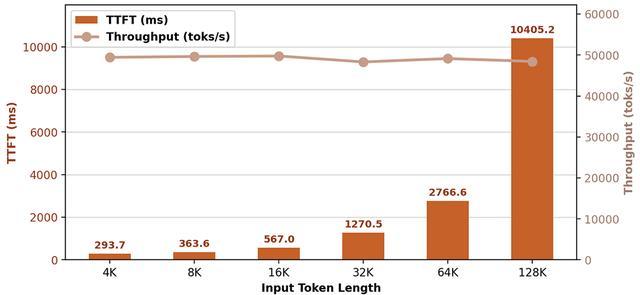 在Prefill单机吞吐约50000 toks/s的条件下,不同Context Length都取得了优越的TTFT性能。