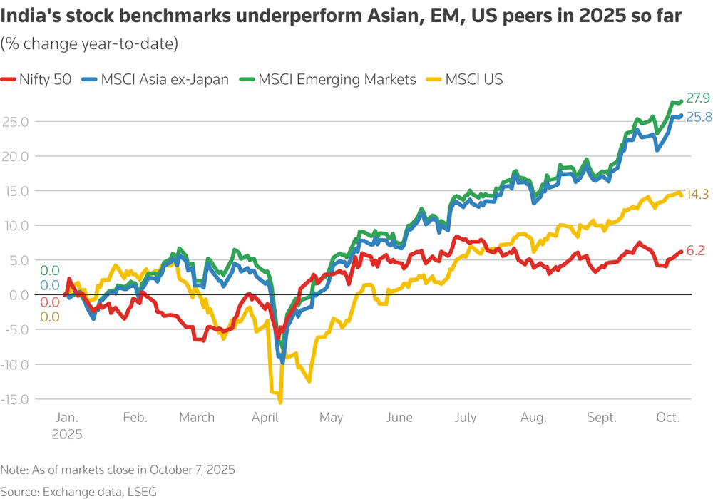 2025年以来,卢比兑美元已贬值近5%,这还是在同期美元指数下跌超过7%的基础上。这意味着,如果盈利10%,但卢比贬值7%,从美元视角看,风险收益比可能还不如美债。