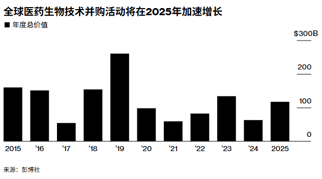 生物制药交易在过去一年里增长了一倍多。多起交易消息公布后,买方股价应声上涨,表明投资者希望它们继续出手。部分交易人士预计,2026年还将好于去年。