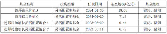 表格系德邦稳盈增长与德邦鑫星价值基金规模