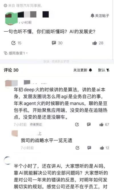 会议结束后,理想汽车员工吐槽不断。有员工直言:“用户最在意的还是车的品质、价格和可靠性,而非AI技术多先进。”这番吐槽,尖锐地指向了公司战略与业务根基之间的裂痕。