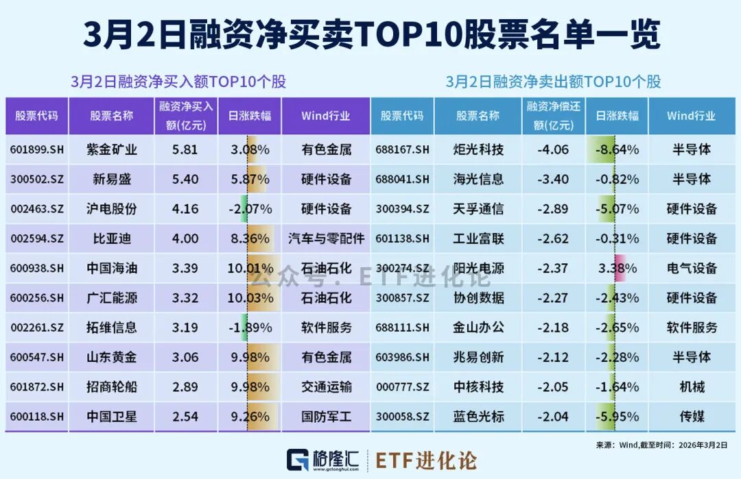 紫金矿业、中国海油、广汇能源净买入居前,大幅抛售炬光科技、海光信息等半导体个股。