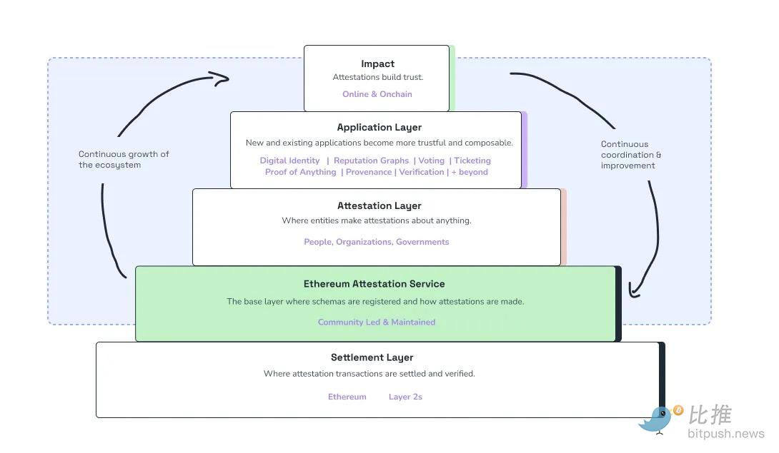 中间层是身份提供者层。这将密钥连接到现实世界的实体,如注册公司、金融机构或经过验证的个人。没有这种绑定,签名只能证明控制权,而不能证明问责制。