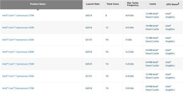 事实上,现在的第一代和第二代酷睿系列,本质上都源于Raptor Lake 14代酷睿,都只有移动版本,规格偏低。