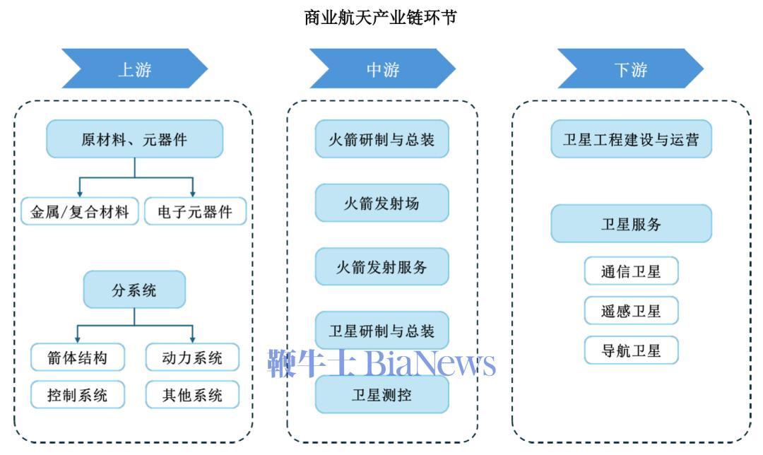 从产业链的角度来看,运载火箭是商业航天产业链最核心的环节,负责串联起从上游原材料到下游卫星应用的全流程,技术密集、资本投入大,是壁垒最高的环节。
