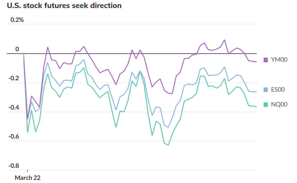 FX168财经报社(亚太)讯 周一(3月23日)亚市早盘,美国股指期货在小幅上涨与下跌之间来回波动。美国总统唐纳德·特朗普和伊朗方面再度发出升级威胁,令搅动波斯湾地区局势的这场冲突面临进一步恶化风险。