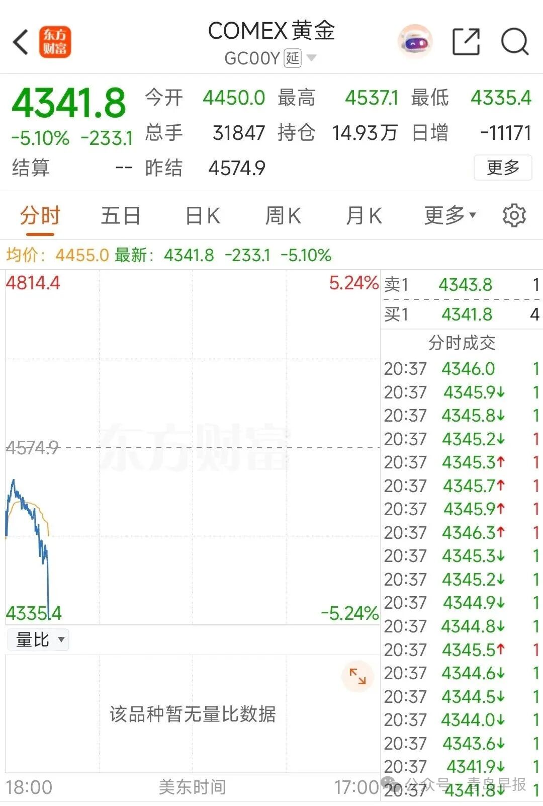 国际金价上演断崖式下跌