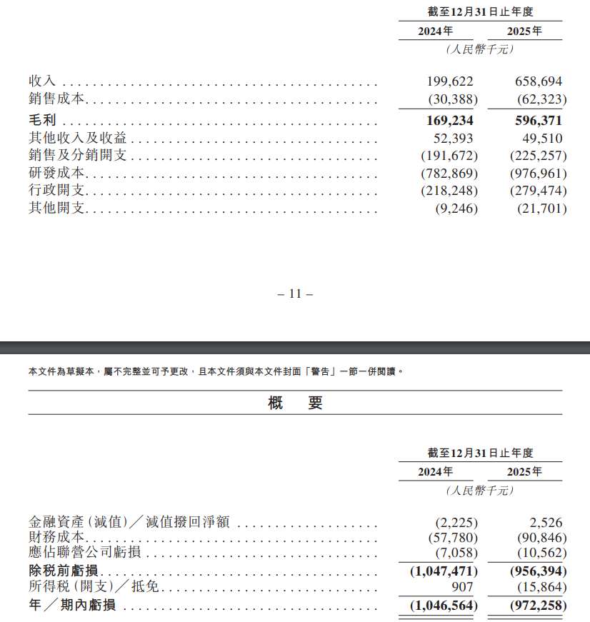 于2024年度、2025年度,公司年╱期内亏损分别约为10.47亿元、9.72亿元人民币。