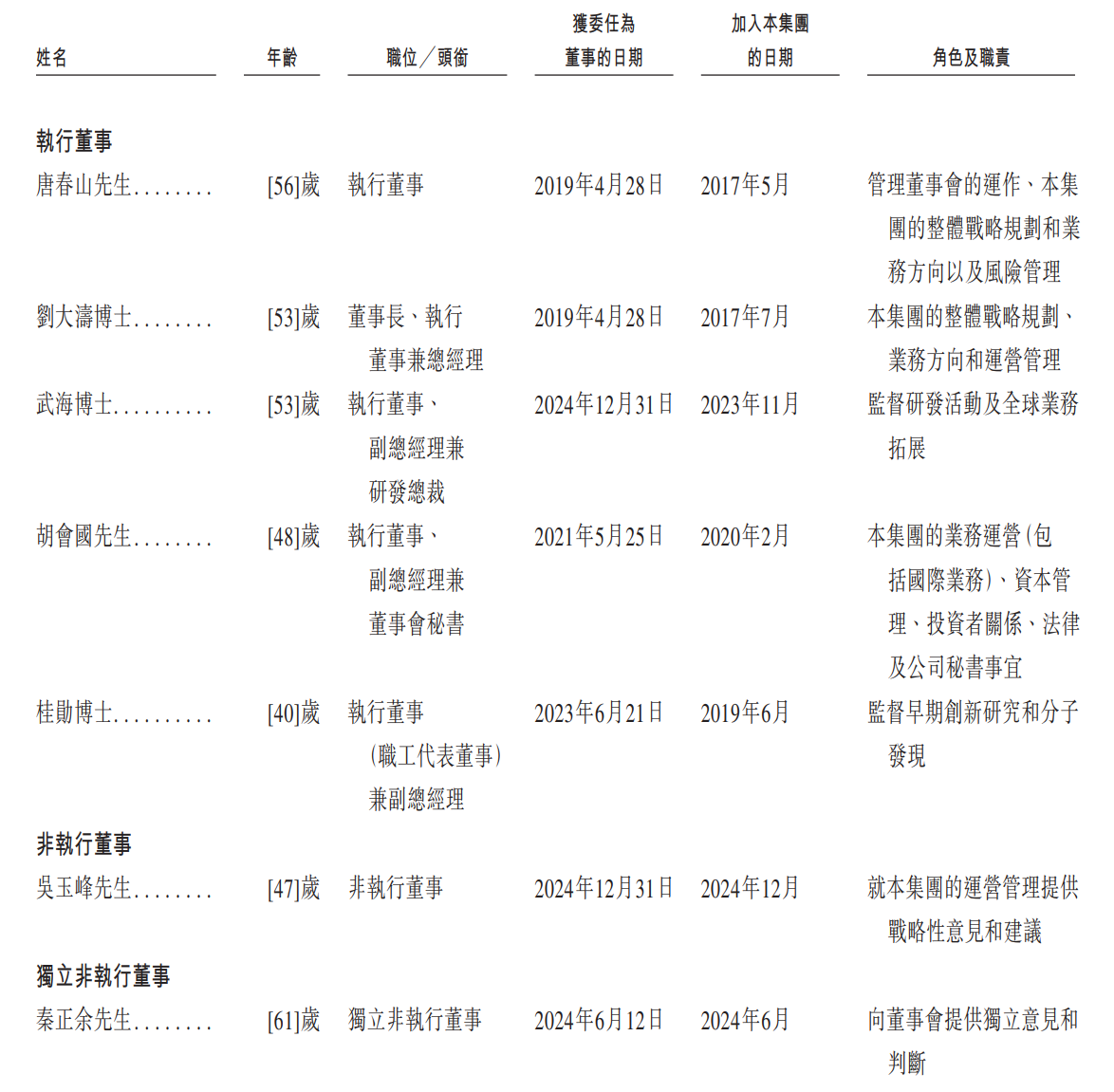董事会由十名董事组成,包括五名执行董事、一名非执行董事和四名独立非执行董事。董事任期三年,可连选连任。根据中国相关法律法规,独立非执行董事连续任职不得超过六年。