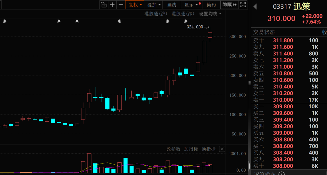 从行情上来看,成交活跃股本周以上涨为主,迅策涨幅居首,一周上涨56.17%,滴普科技、国泰君安国际、长飞光纤光缆随后,一周分别上涨52.53%、31.49%、17.67%;山东墨龙下跌7.9%,中国海洋石油跌1.85%。