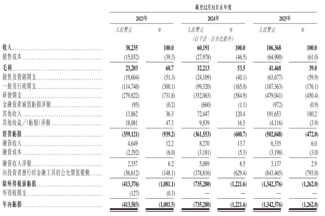 招股书显示,曦智科技2023年、2024年、2025年营收分别为3823.5万元、6019万元、1.06亿元;毛利分别为2320万、3221万、4147万元;毛利率分别为60.7%、53.5%、39%。